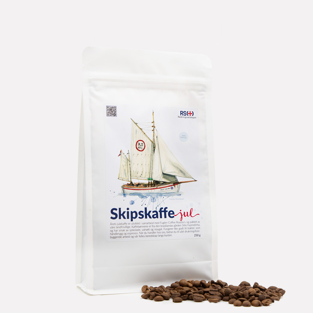 Skipskaffen er ikke bare god kaffe – det er også et produkt som bidrar til noe større. Med Fuglen Coffee Roasters som samarbeidspartner er kvaliteten ivaretatt gjennom hele prosessen, fra gården i Brasil til brenning og pakking. Når du kjøper årets julekaffe, støtter du samtidig Redningsselskapets viktige arbeid langs norskekysten. Det betyr at hver kopp du nyter også bidrar til trygghet for andre.